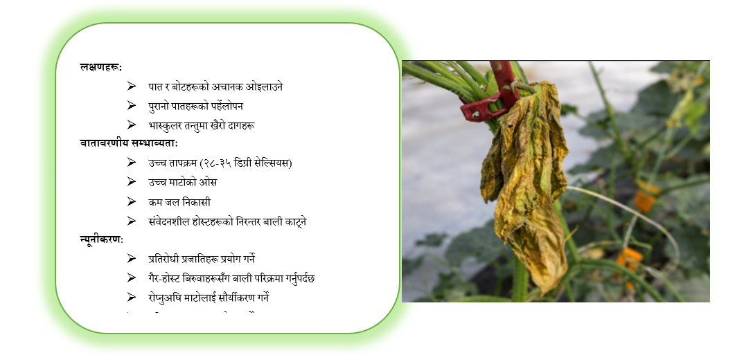 लहरेबाली (कााँक्रो, फर्सी, लौका आदि) मा दिदिन्न रोगहरूलेउत्पािन घटाउनेमख्ुय र्समस्या दर्सर्जना गर्जन्। र्समयमै रोग पदहचान र र्सही व्यिस्थापन गनज र्सके राम्रो उत्पािन दलन र्सदकन्र् ।